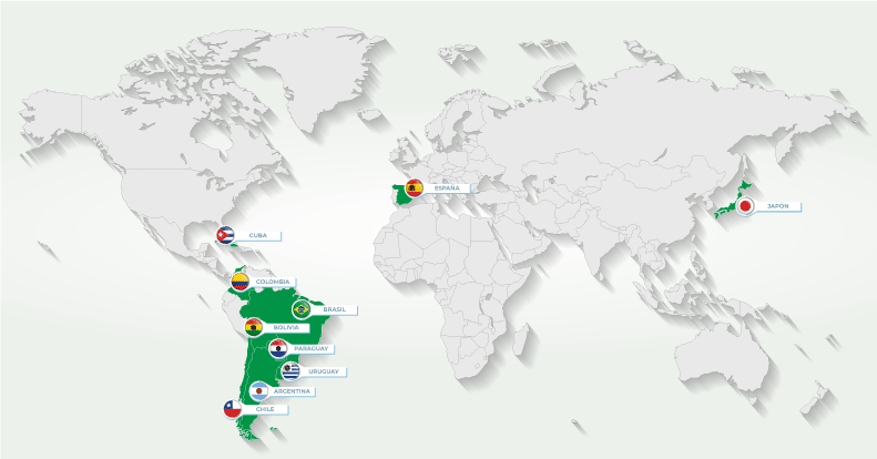 Paraguay, Brasil, Uruguay, Colombia, Cuba, España y Japón.